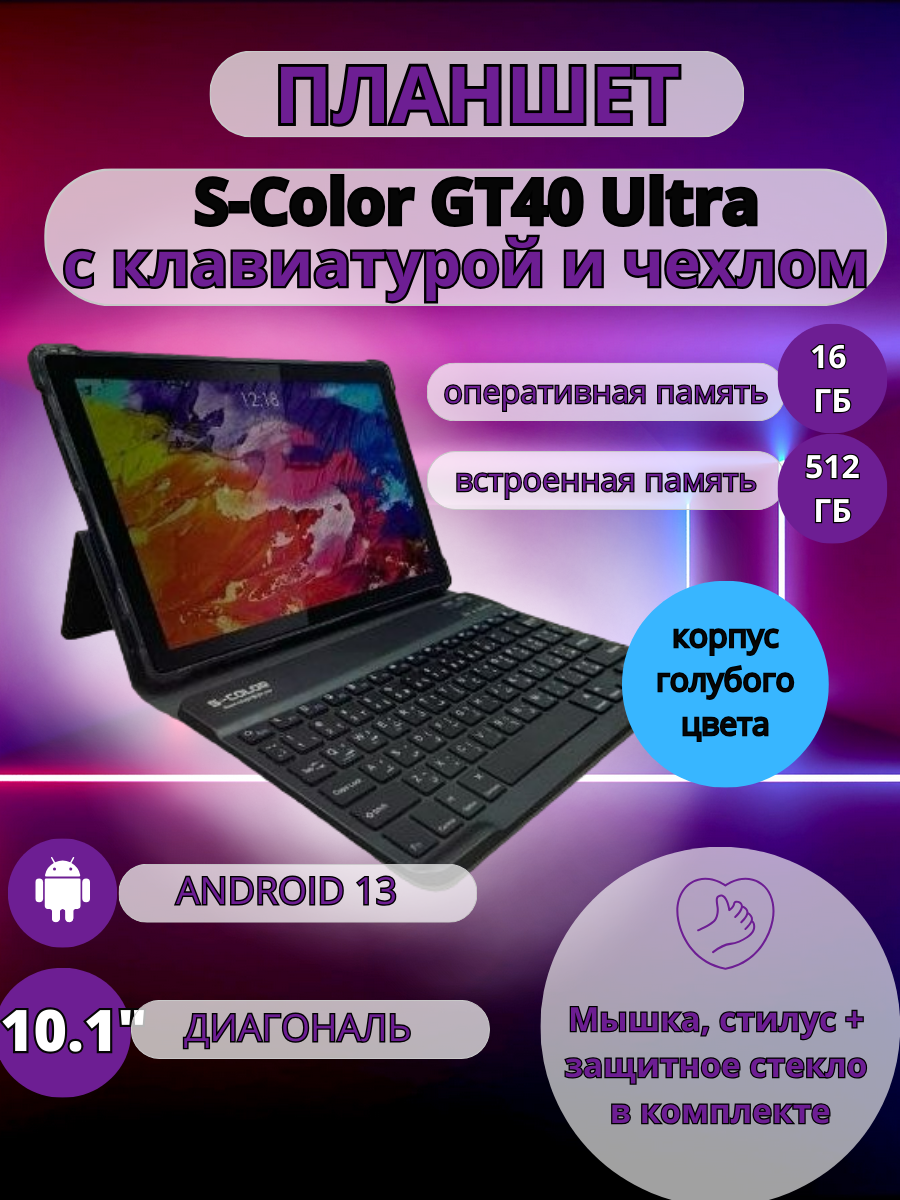 10 цен на Планшет S-COLOR GT40 Ultra 16/512 GB 10.1 дюйм Android 13 голубой