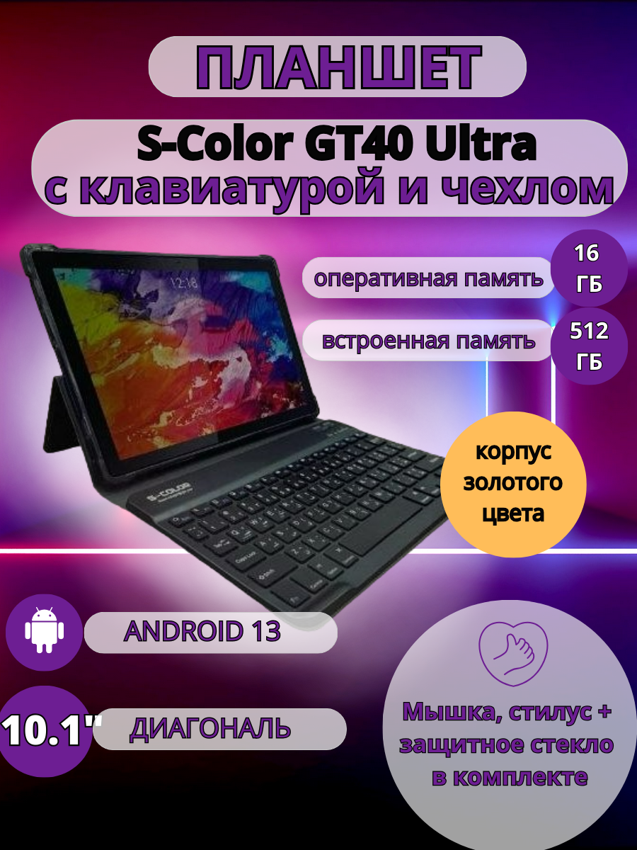 Отзывы на Планшет S-COLOR GT40 Ultra 16/512 GB 10.1 дюйм Android 13 золотистый