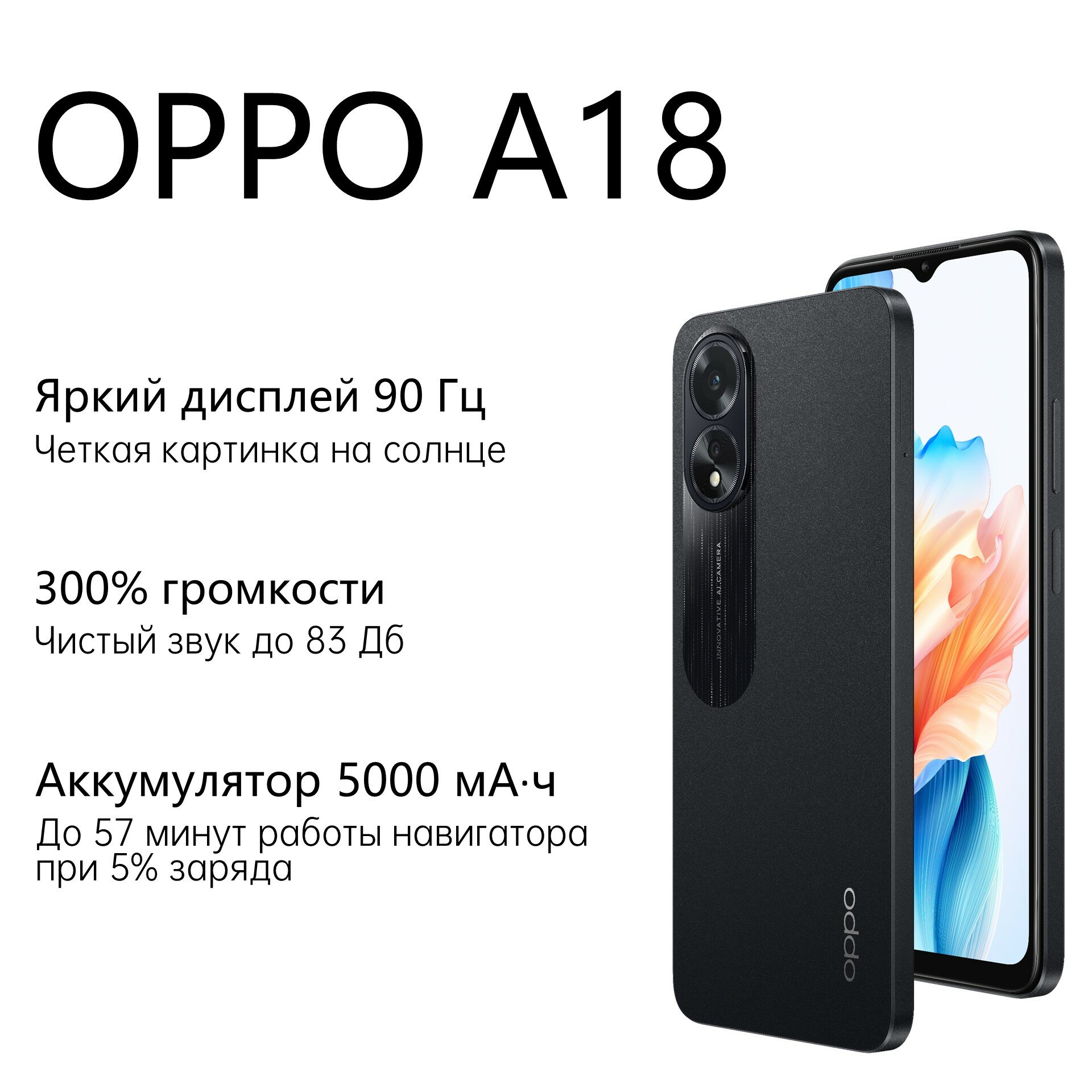 Смартфон OPPO A18 4/128 ГБ, Dual nano SIM, черный