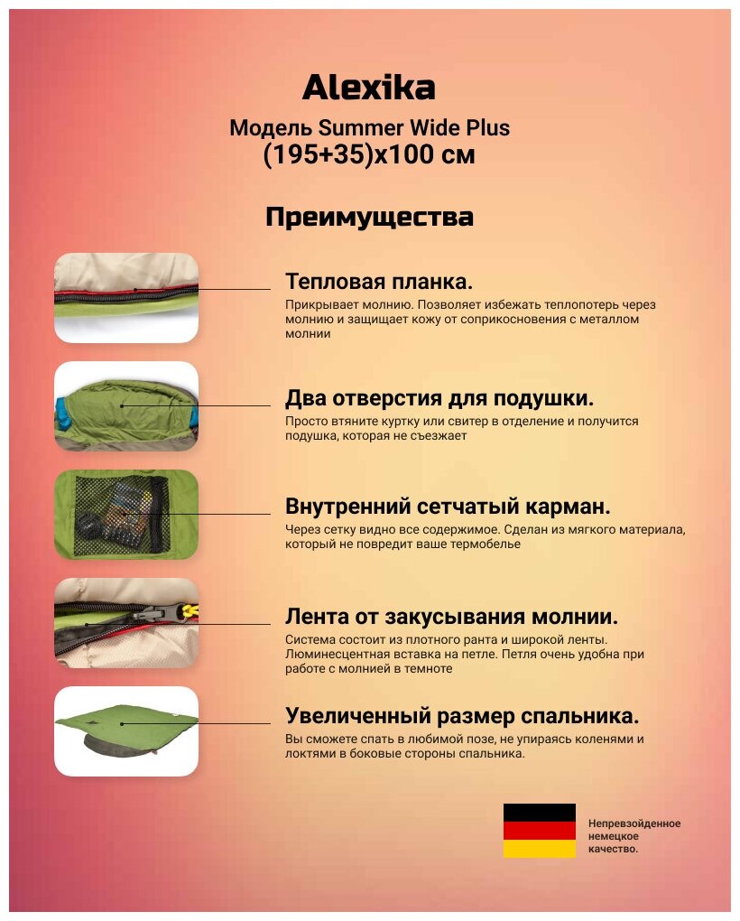 Спальный мешок Alexika SUMMER WIDE PLUS левосторонняя молния информация:
