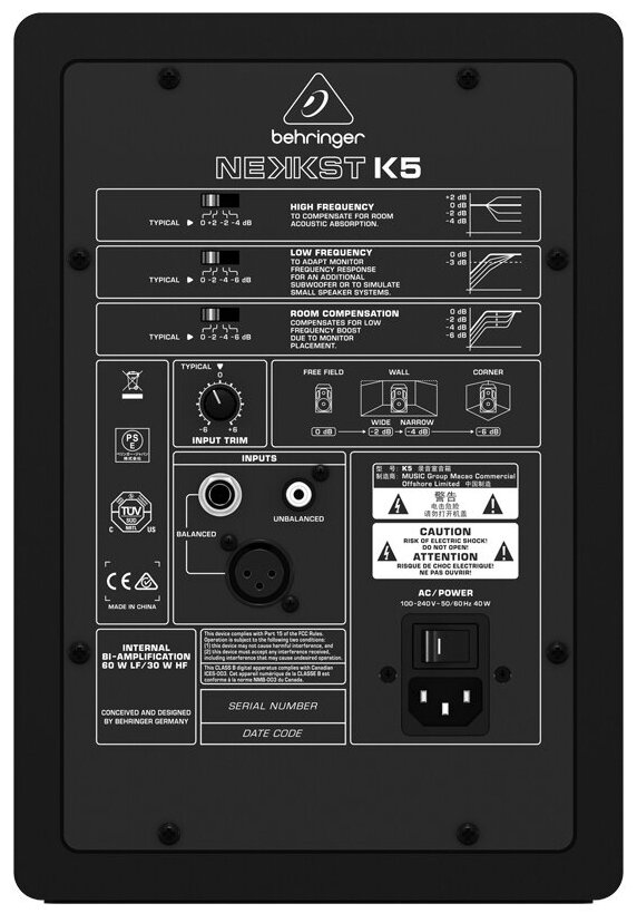 Behringer K5 2-полосный студийный монитор 1"+5" BiAmp 100W, три позиционных частотных фильтра