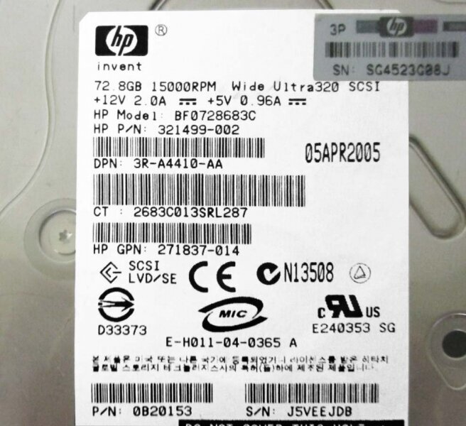BF0728683C Hewlett-Packard 72GB U320 SCSI 15K информация: