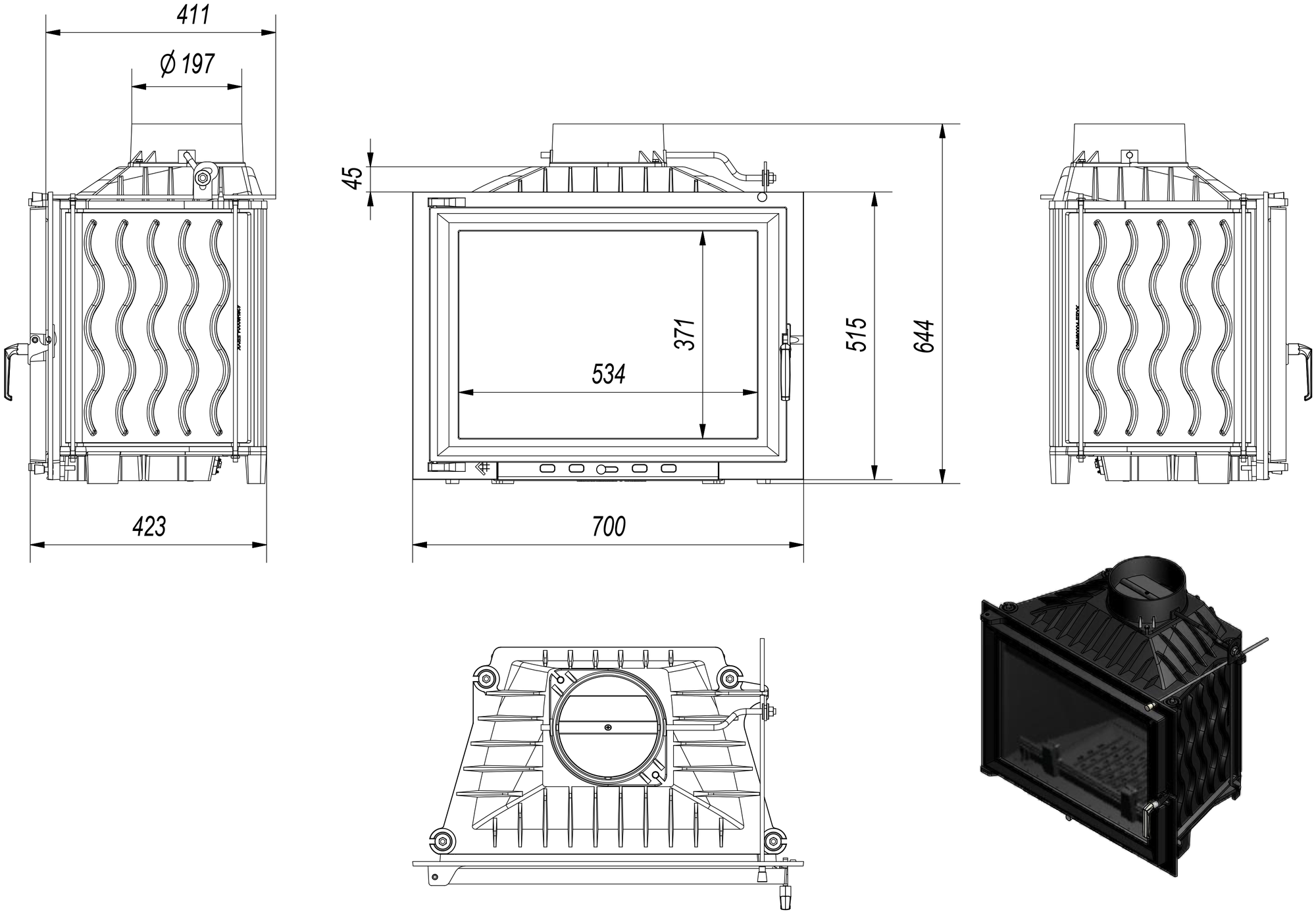 Каминная топка ERYK 700 12 кВт информация: