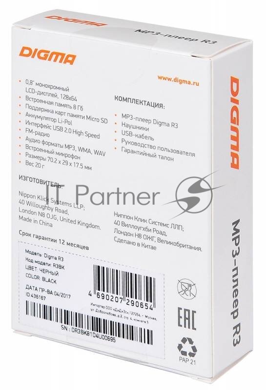 Мы выбрали 10 лучших цен на Плеер Flash Digma R3 8Gb черный/0.8"/FM/microSD/microSDHC/clip. Перед тем как купить Плеер Flash Digma R3 8Gb черный/0.8"/FM/microSD/microSDHC/clip посмотрите найденные предложения из Яндекс Маркета и других сайтов на основе XML фидов.