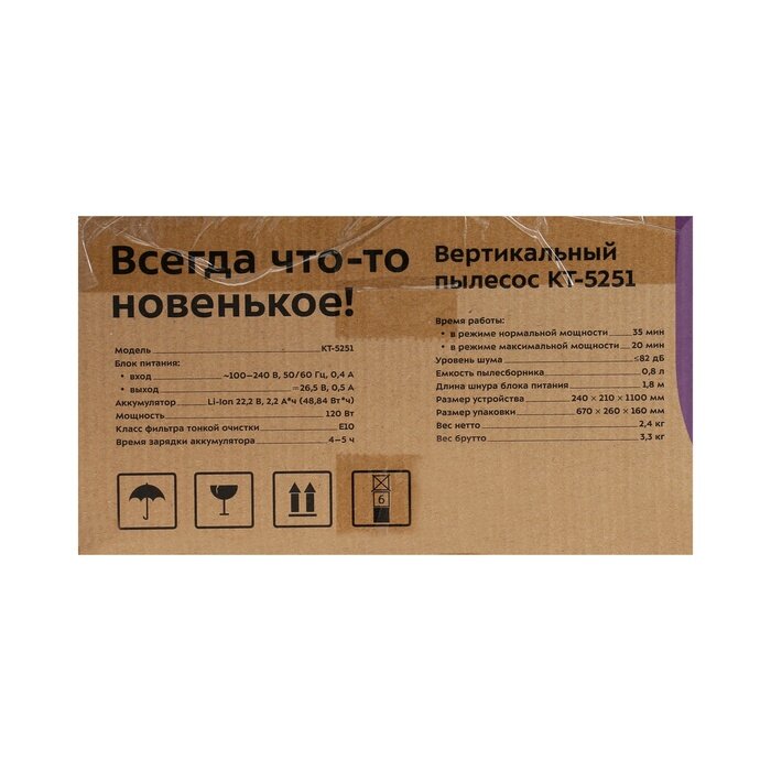 Ручной пылесос (handstick) KitFort КТ-5122, 250Вт, черный/фиолетовый