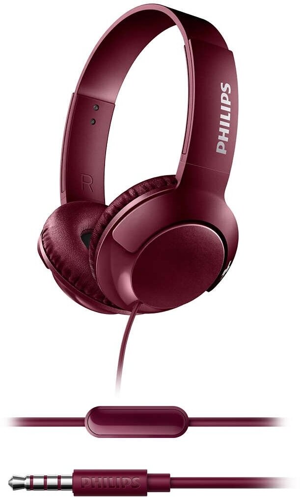 Наушники Philips BASS+ SHL3075, mini jack 3.5 mm, красный