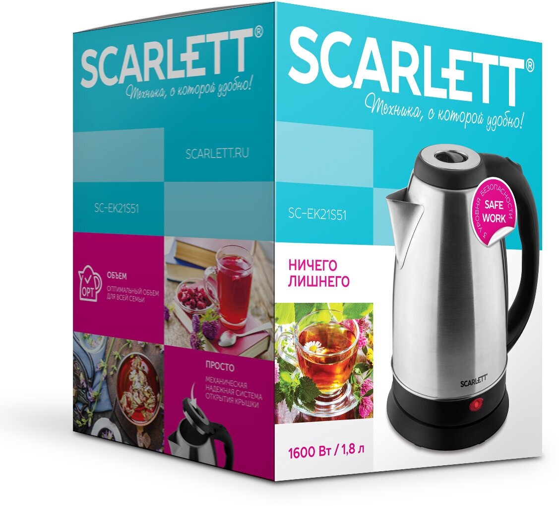 Чайник scarlett sc-ek21s51 1500вт 1,8л металл информация: