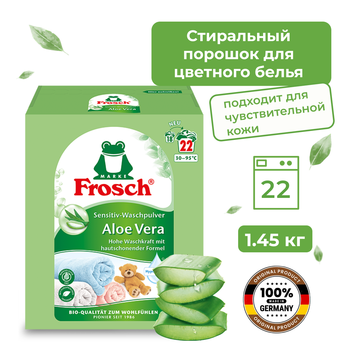 Стиральный порошок FROSCH фрош COLOR Алое Вера для цветного белья, 1.45 кг