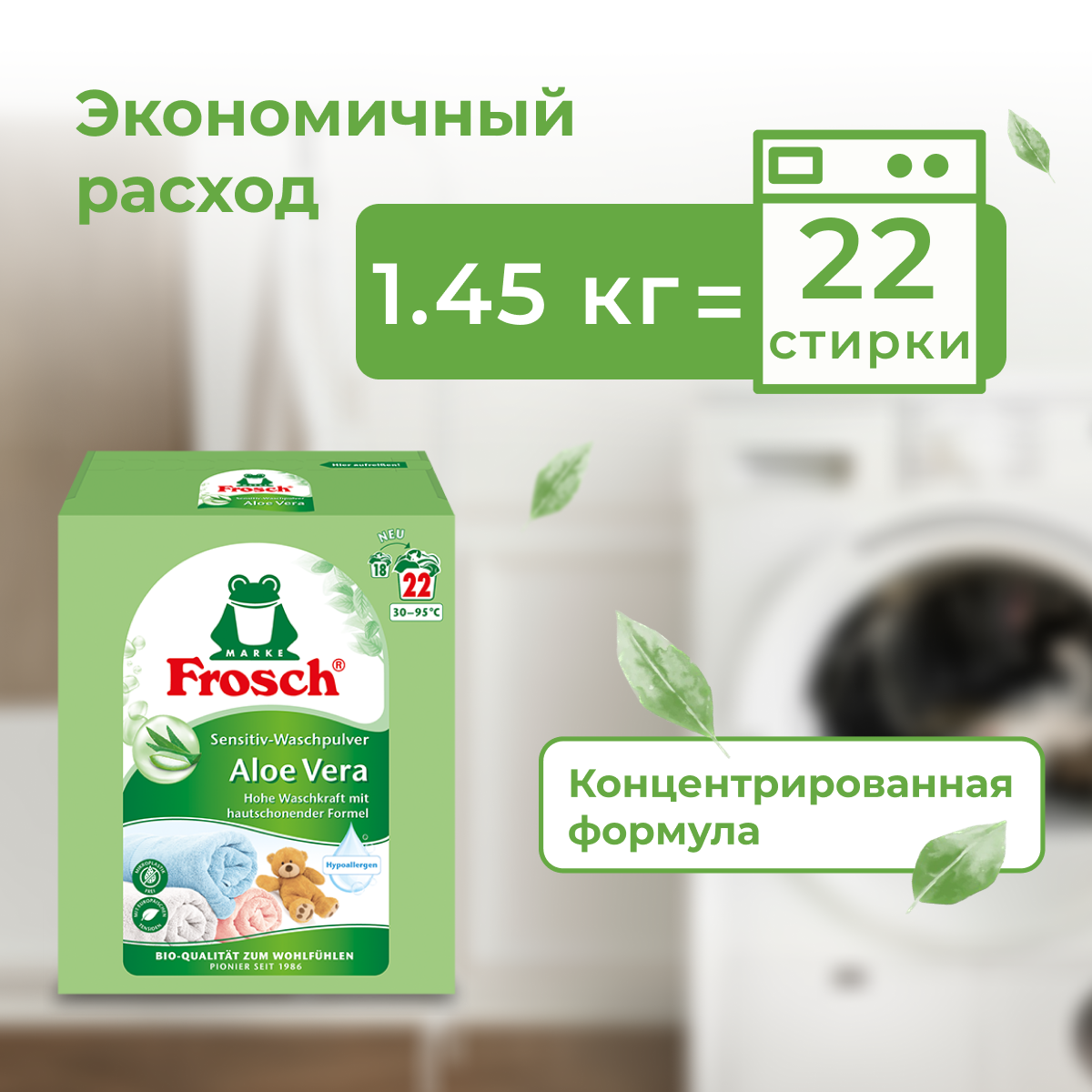 Frosch Sensitiv Aloe Vera Концентрированный стиральный порошок для цветного белья Алоэ Вера 1.45 кг на 22 стирки