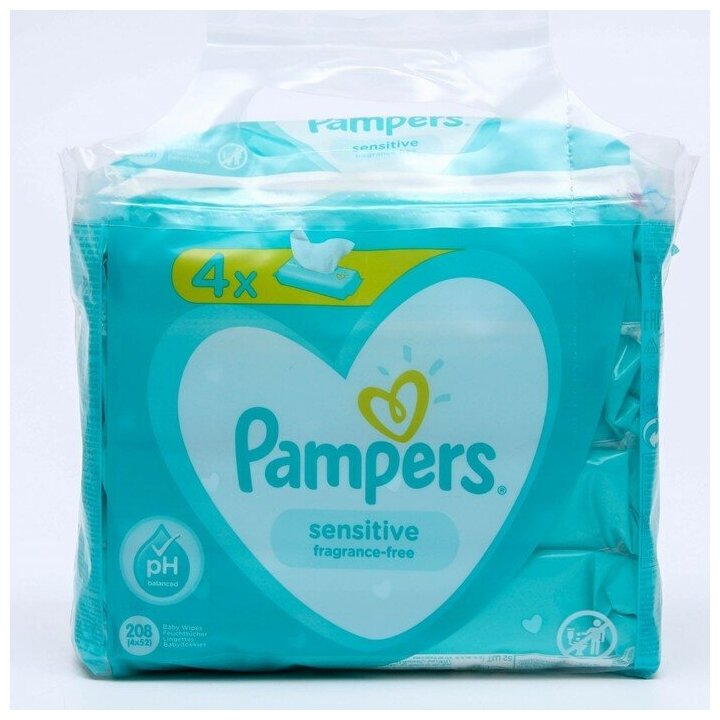 Детские влажные салфетки Pampers Sensitive, 4 уп. по 52 шт.
