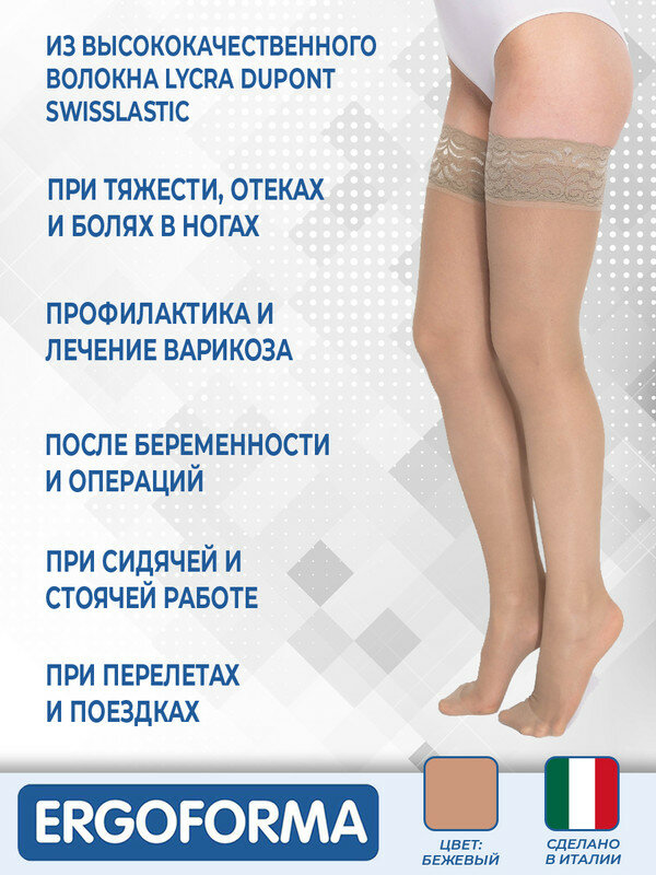 Чулки компрессионные Ergoforma 221 с ажурной резинкой на силиконовых лентах, 2 класс, Размер 4, Телесный