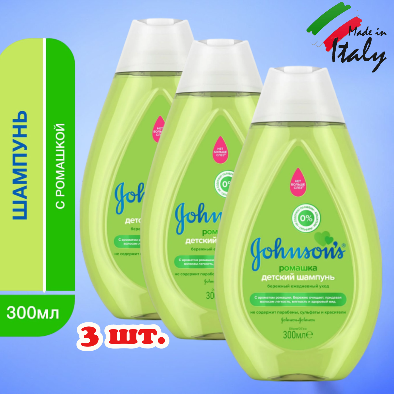 10 цен на Детский шампунь, Johnson's Baby / Джонсонс беби, с ароматом ромашки, Италия, 3 шт.х 300 мл.