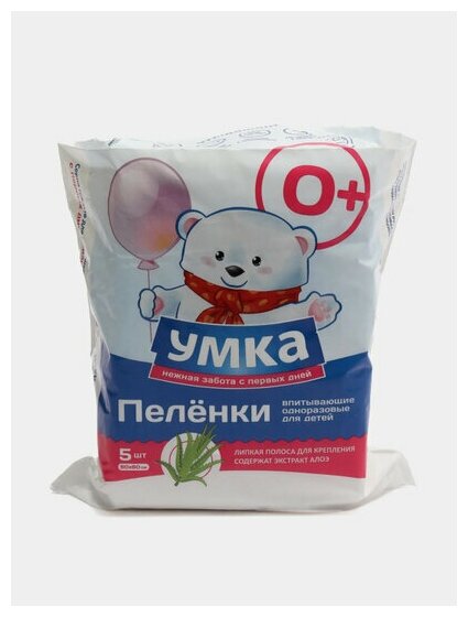 Одноразовая пеленка Умка с экстрактом алоэ 60х60 в упаковке 5 шт информация: