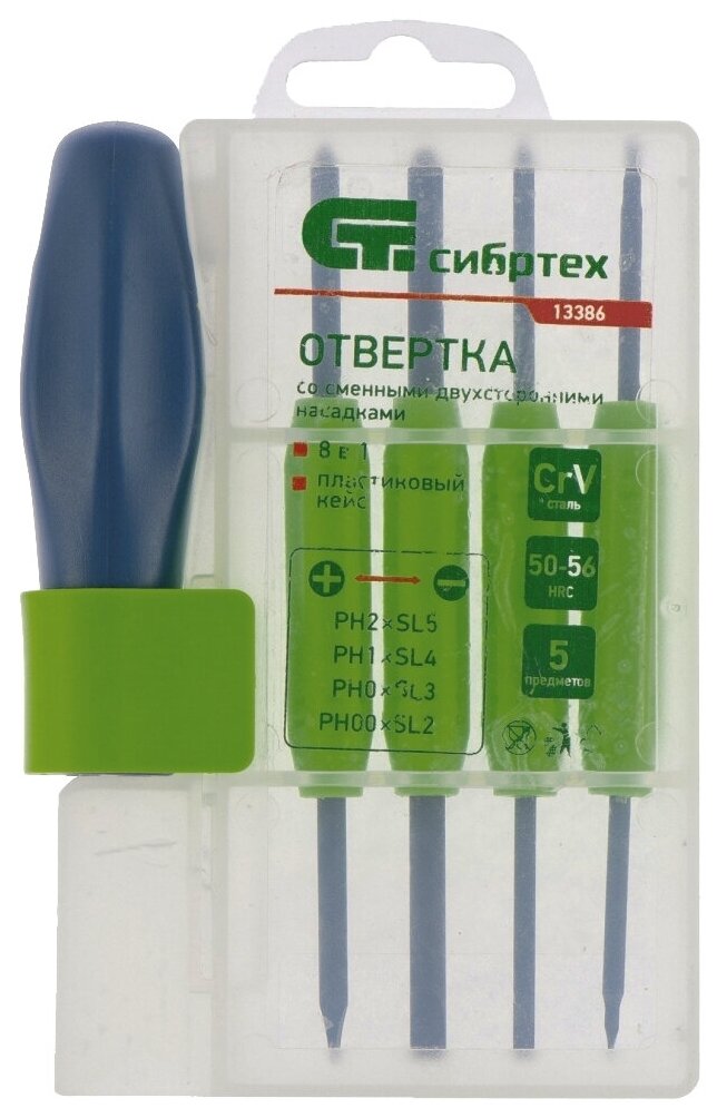 Отвертка со сменными двухсторонними насадками, 8 в 1, пластиковый кейс, CrV Сибртех ( 13386 ) 295 ₽