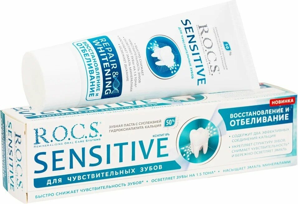 R.O.C.S. SENSITIVE зубная паста Восстановление и Отбеливание, 94 гр