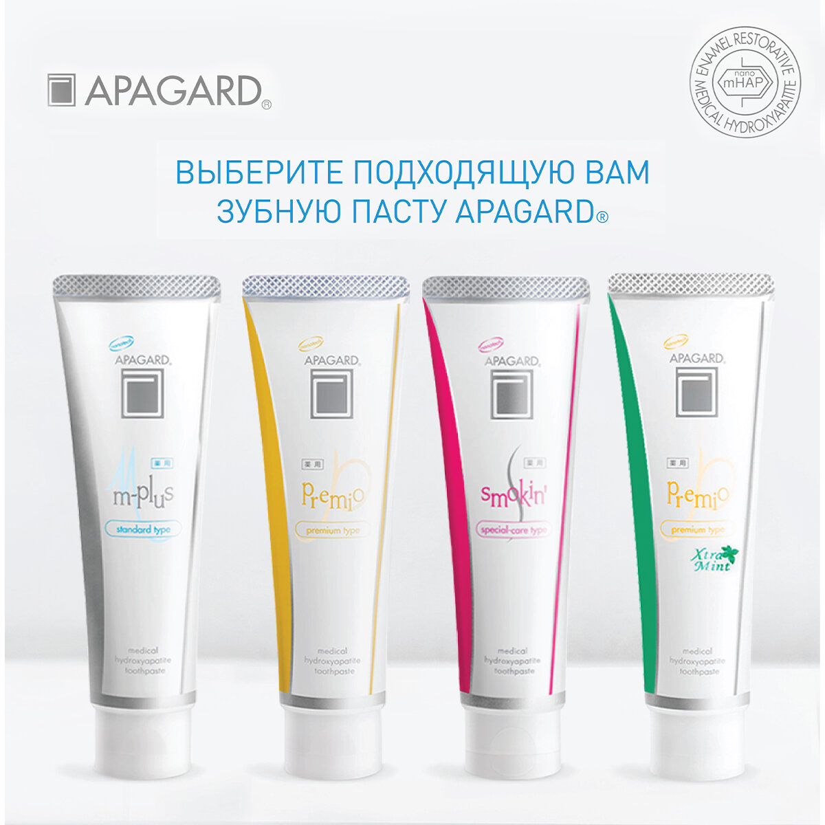 Apagard premiо зубная паста профилактическая отбеливающая, с повышенным содержанием медицинского нано-гидроксиапатита и специальным отбеливающим составом, 100 гр