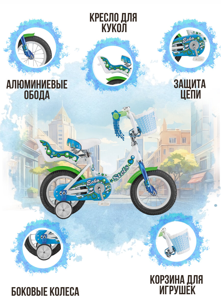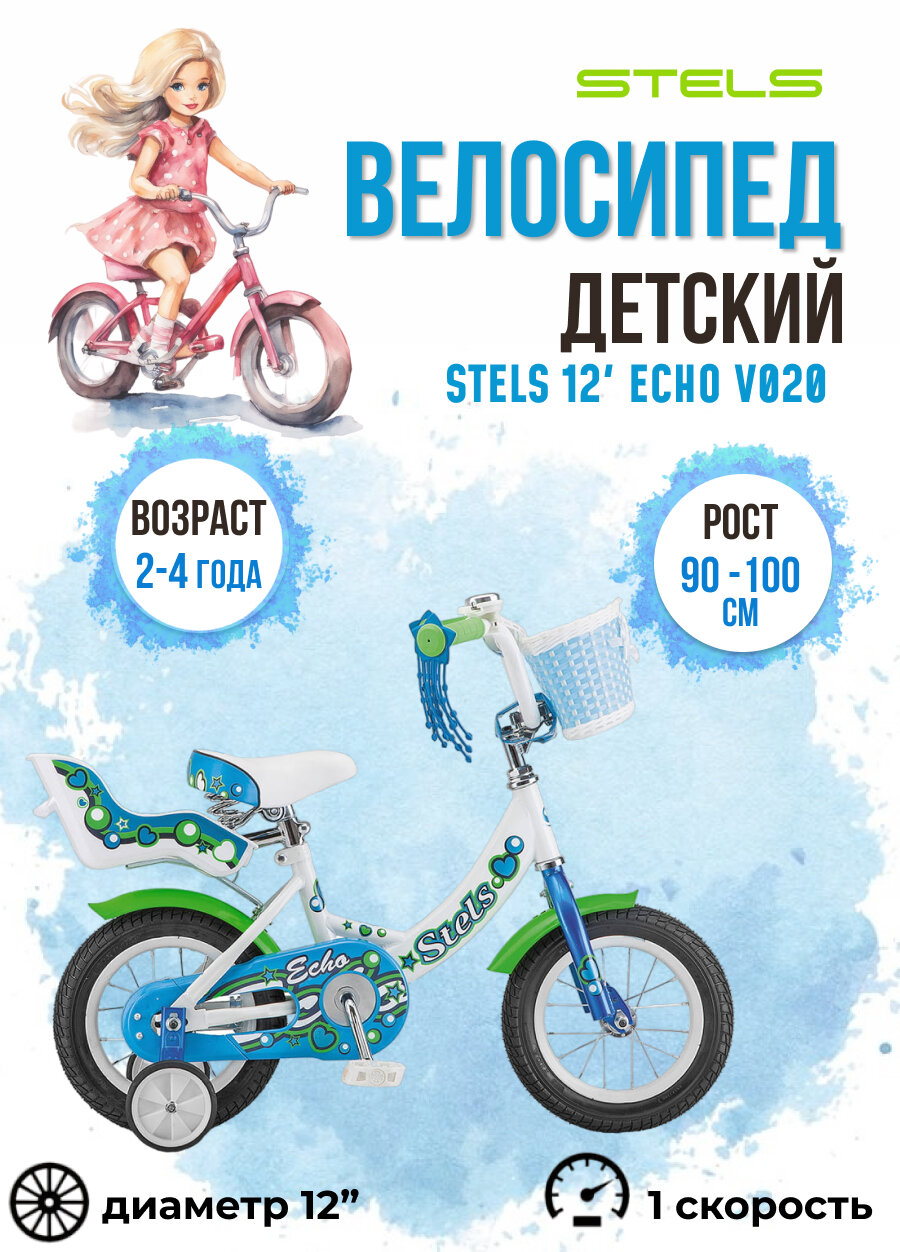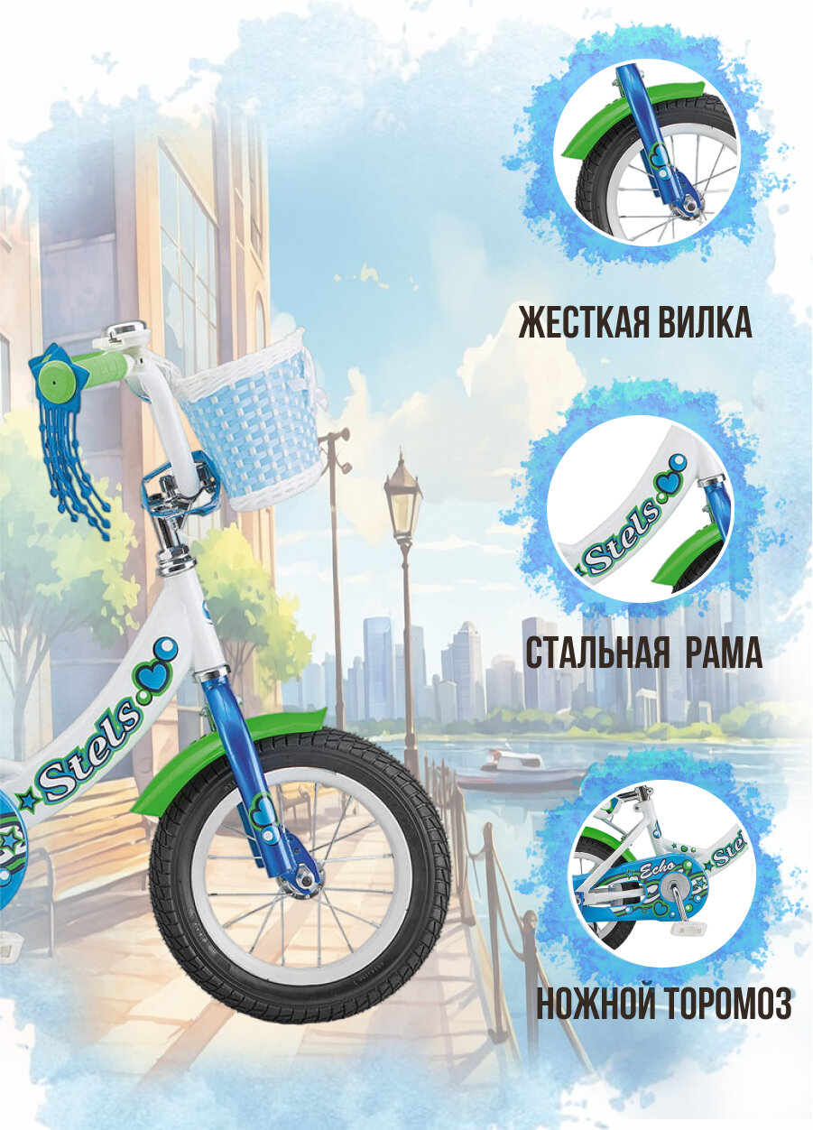 Велосипед детский STELS Echo 12 V020 (2018) белый/морская волна 8" (требует финальной сборки) информация:
