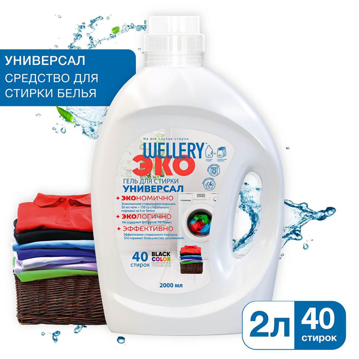 Гель для стирки Wellery ЭКО УНИВЕРСАЛ, 2 л, бутылка
