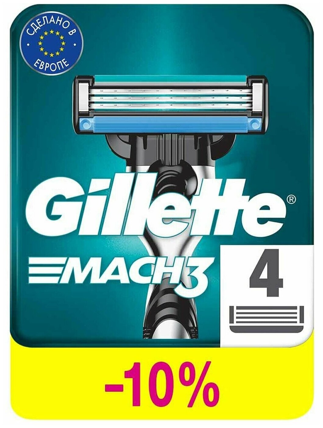 GILLETTE Mach 3 Сменные кассеты для бритья с 3 лезвиями, мужские, 4 шт
