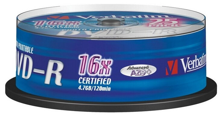 10 цен на Комплект 5 упаковок, Носители информации DVD-R Printable, 16x, Verbatim Azo Wide, Cake/25, 43538