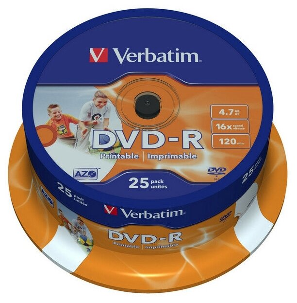 Отзывы на Комплект 5 упаковок, Носители информации DVD-R Printable, 16x, Verbatim Azo Wide, Cake/25, 43538