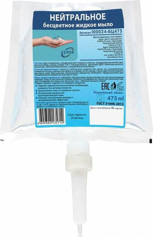 Отзывы на Картридж с жидким мылом KEMAN нейтральное бесцветное S2 475мл 100...