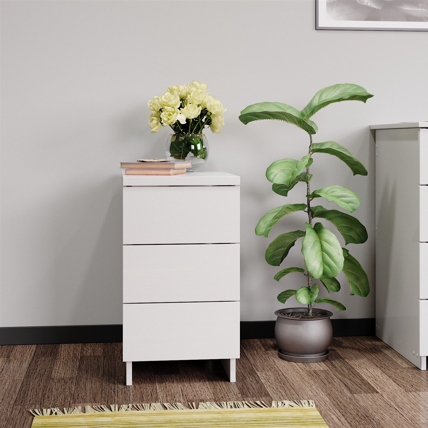 10 цен на Тумба прикроватная, офисная с ящиками, тумба для спальни, на кухню и ванную белая domokomod 3 ящиками 33*50*58