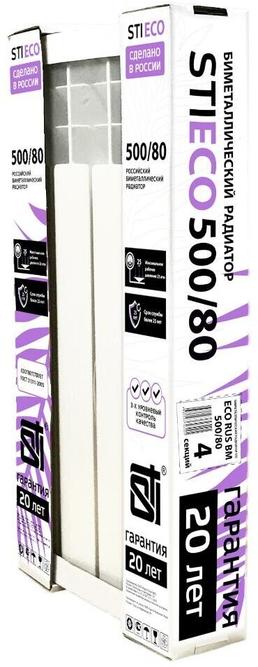 Отзывы на Радиатор секционный STI Bimetal 500/80, кол-во секций: 4, 5.16 м2, 516 Вт, 312 мм.биметаллический
