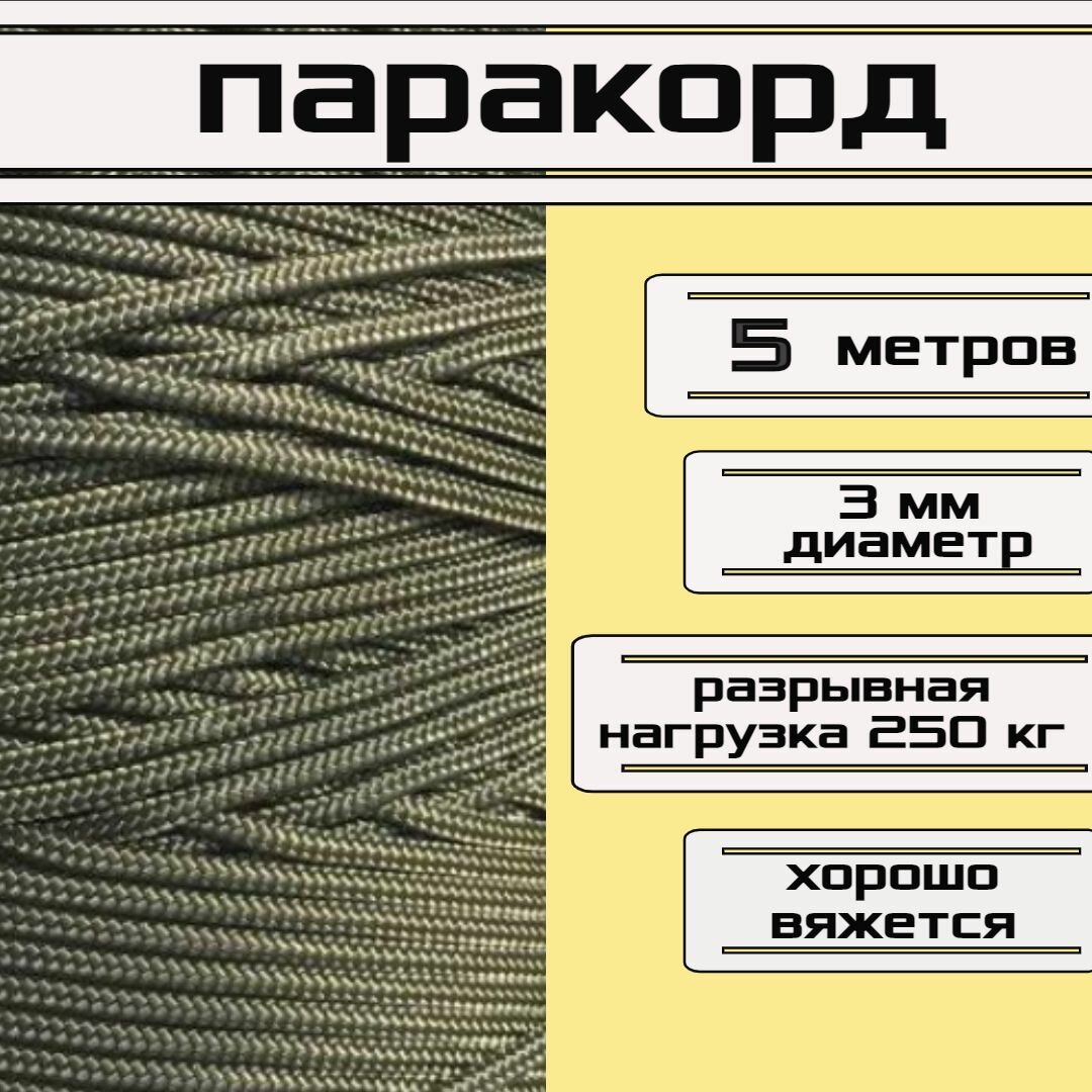 Паракорд хаки 3 мм / плетеный шнур, яркий, прочный, универсальный, длина 5 метров информация:
