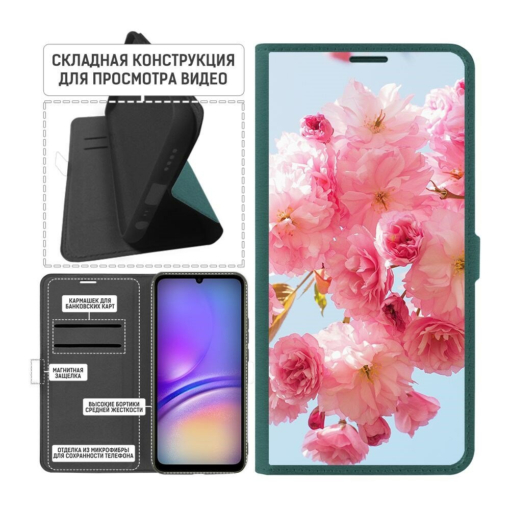 Чехол-книжка Krutoff Eco Book для Samsung Galaxy A05 Сакура (зелёный опал) информация: