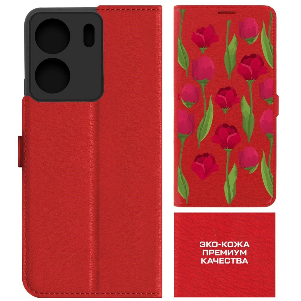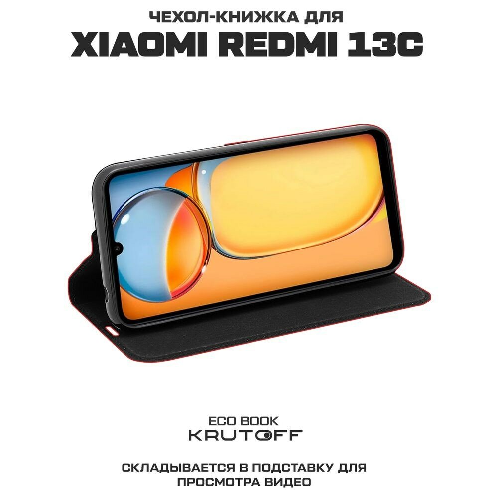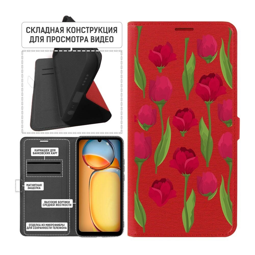 Чехол-книжка Krutoff Eco Book для Xiaomi Redmi 13C Розы паттерн (красный) информация: