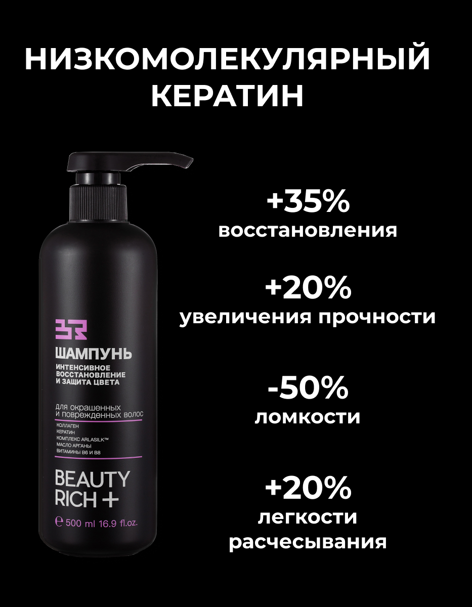 10 цен на Beauty Rich Восстанавливающий шампунь с кератином и коллагеном для поврежденных и окрашенных волос