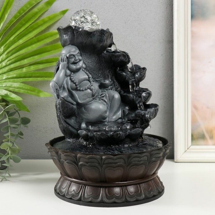 Фонтан настольный от сети, подсветка "Хотей в сером лежит на слитках золота" 21х21х30 см информация: