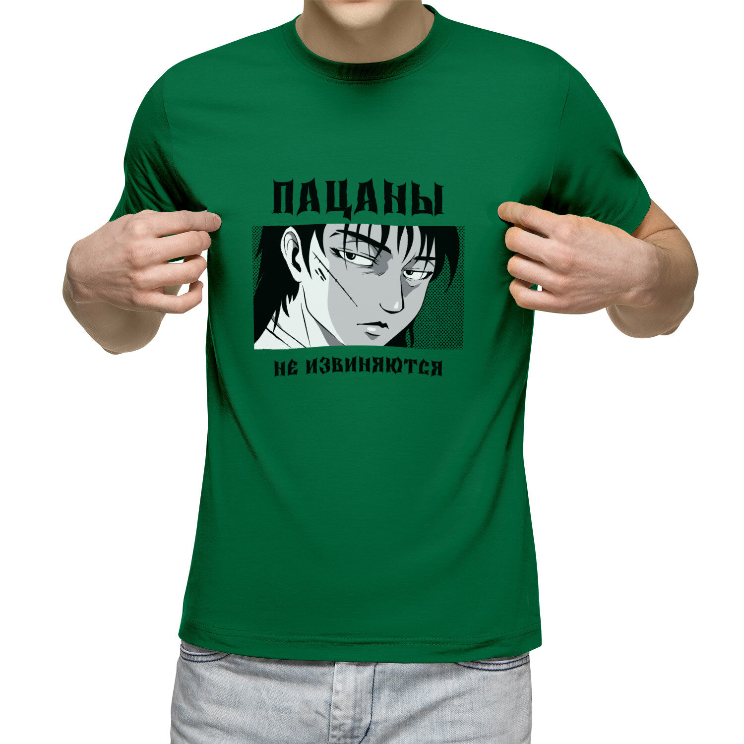 10 цен на Мужская футболка «Пацаны не извиняются - скорлупа со шрамом» (L, зеленый)