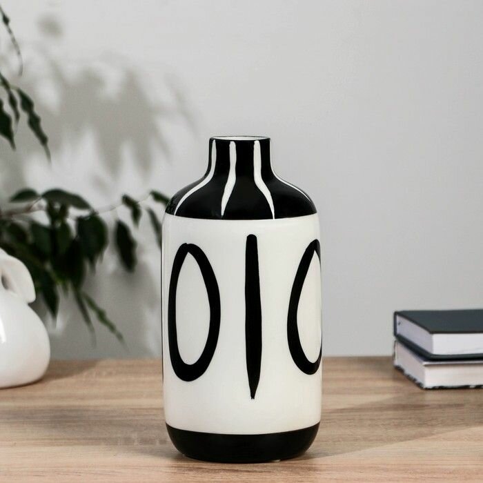 10 цен на Ваза керамика настольная "Пикассо" (ручная роспись) ребус, высота 22 см, диаметр 4см чёрно-белый