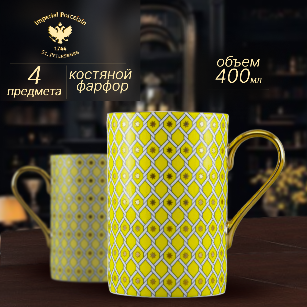 Набор бокалов 4 шт, 400 мл. Форма "Идиллия", рисунок "Примула 2". Императорский фарфоровый завод ИФЗ. На 4 персоны. информация: