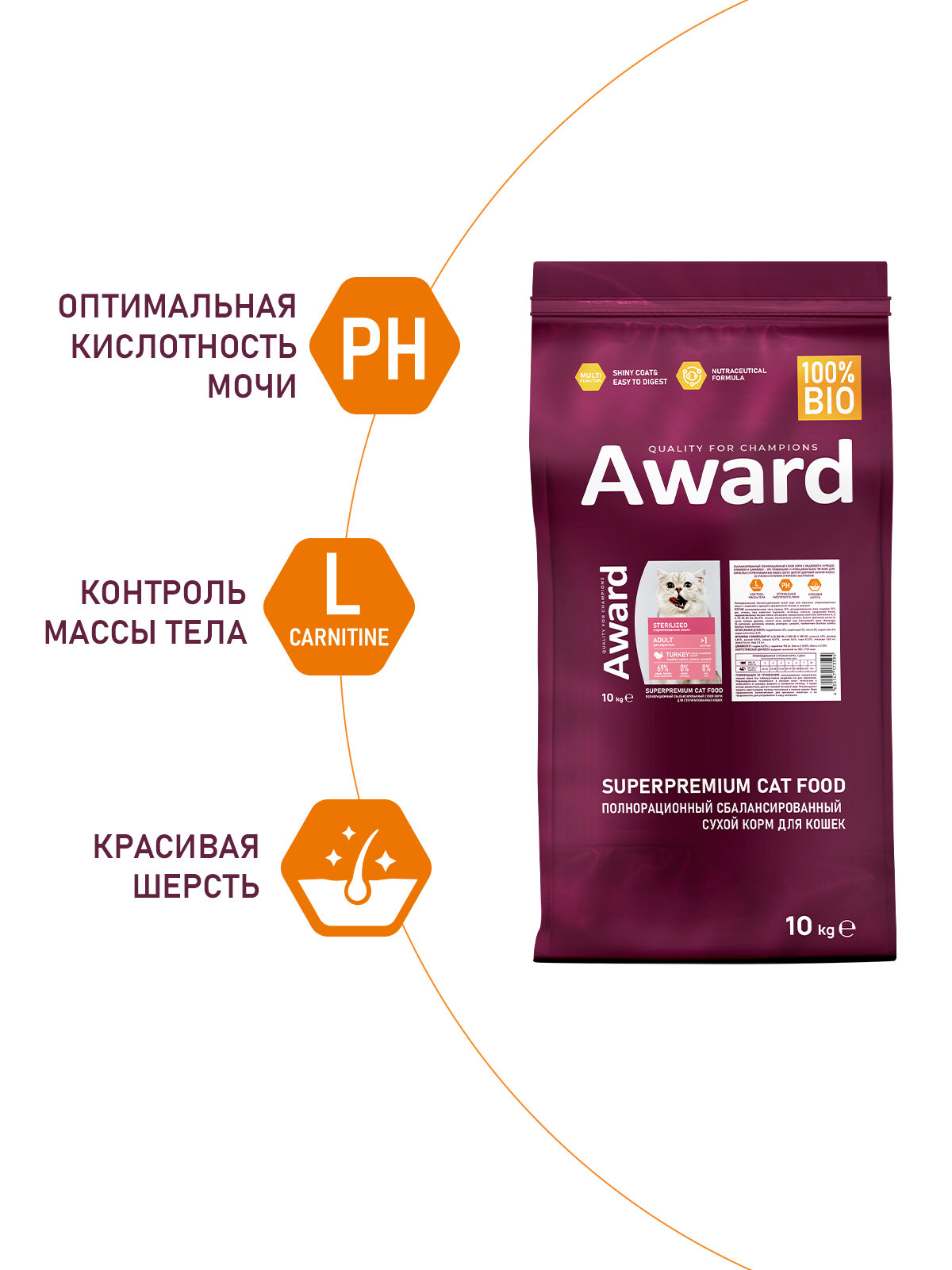 Сухой корм AWARD Sterilized для взрослых стерилизованных кошек с индейкой и курицей с добавлением клюквы и цикория 10кг информация: