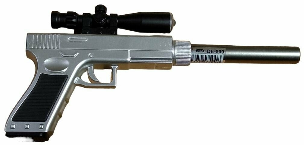 10 цен на Ручка шариковая сувенирная подарочная с фонариком "Пистолет" серебро