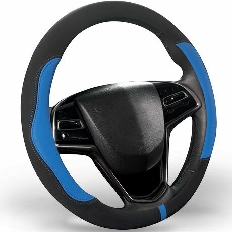 10 цен на Оплетка на руль Ленд Ровер Дискавери Спорт (2019 - 2024) внедорожник 5 дверей / Land Rover Discovery Sport, Замша (премиального качества), Черный с синим