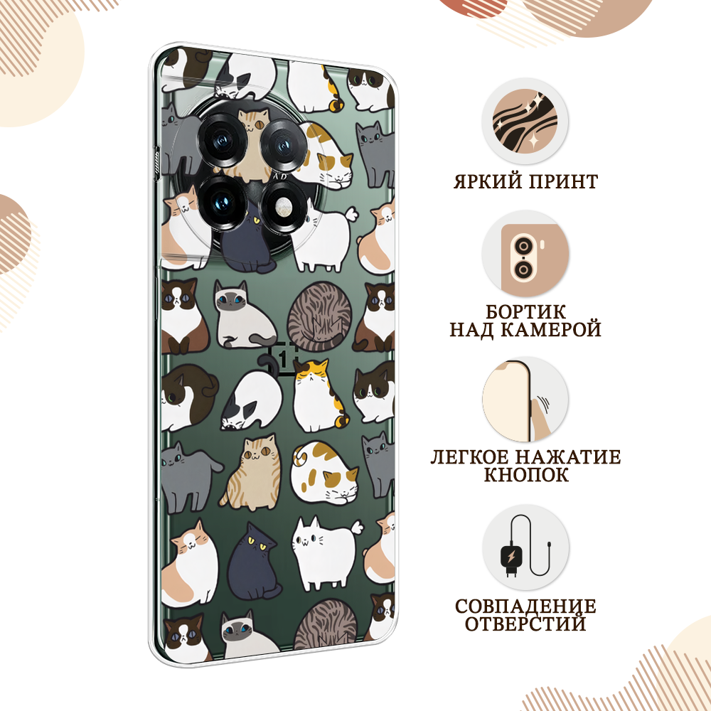 10 цен на Силиконовый чехол "Милые котики" на OnePlus 11 / Ван Плас 11, прозрачный