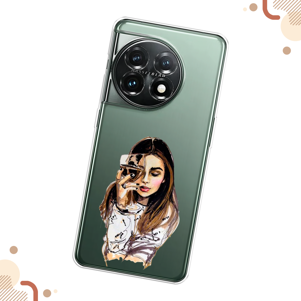 10 цен на Силиконовый чехол "Девушка с бокалом" на OnePlus 11 / Ван Плас 11, прозрачный
