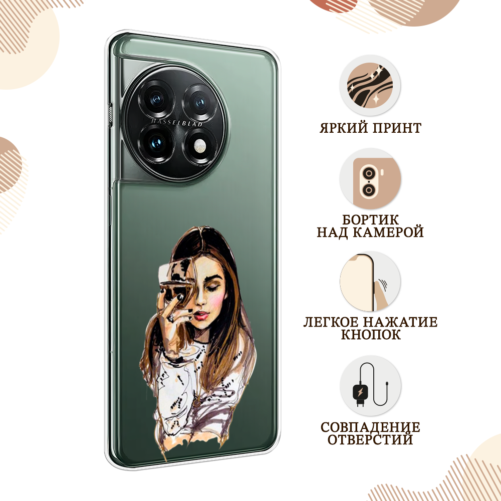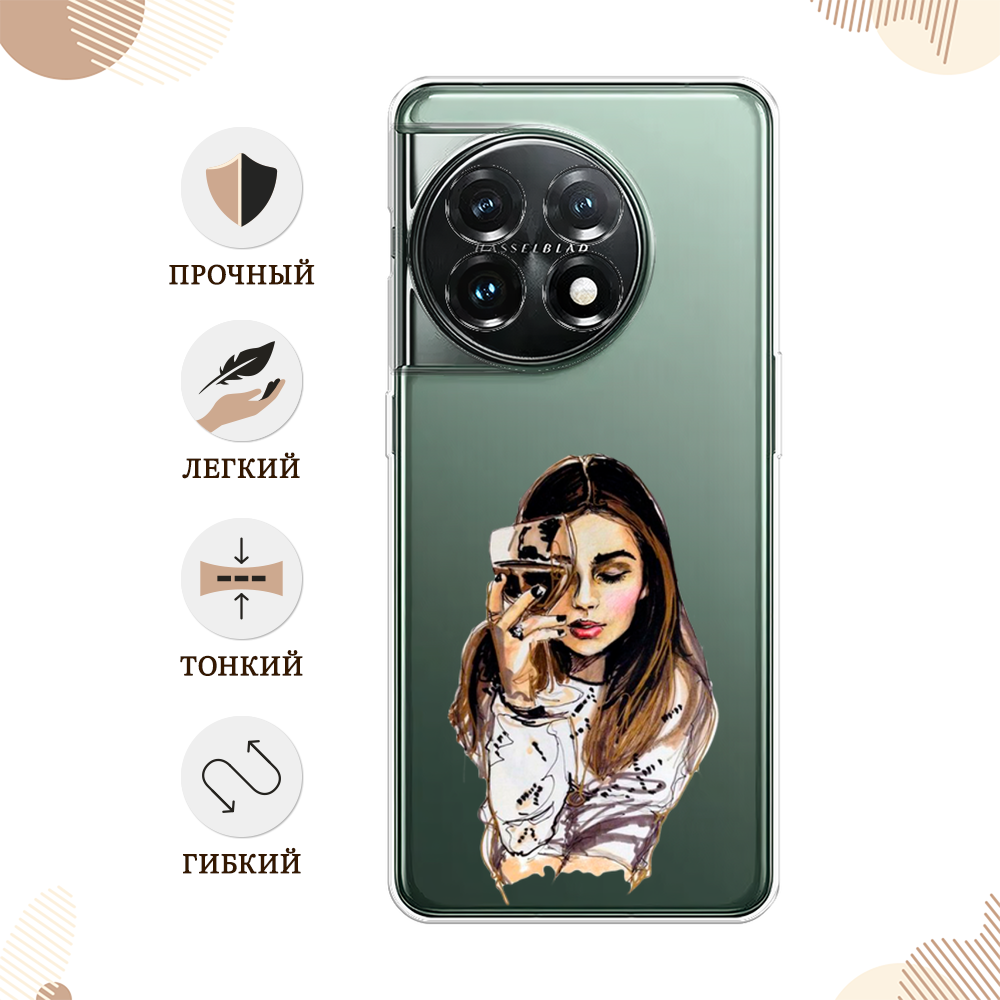 Силиконовый чехол "Девушка с бокалом" на OnePlus 11 / Ван Плас 11, прозрачный информация: