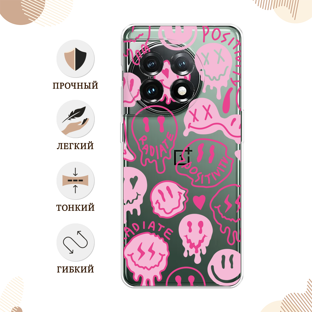 Силиконовый чехол "Галлюциногенные смайлики" на OnePlus 11 / Ван Плас 11, прозрачный информация: