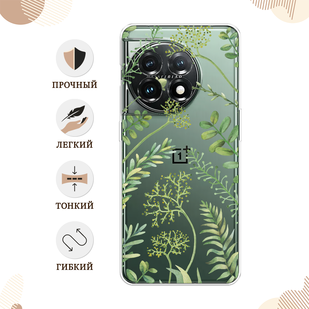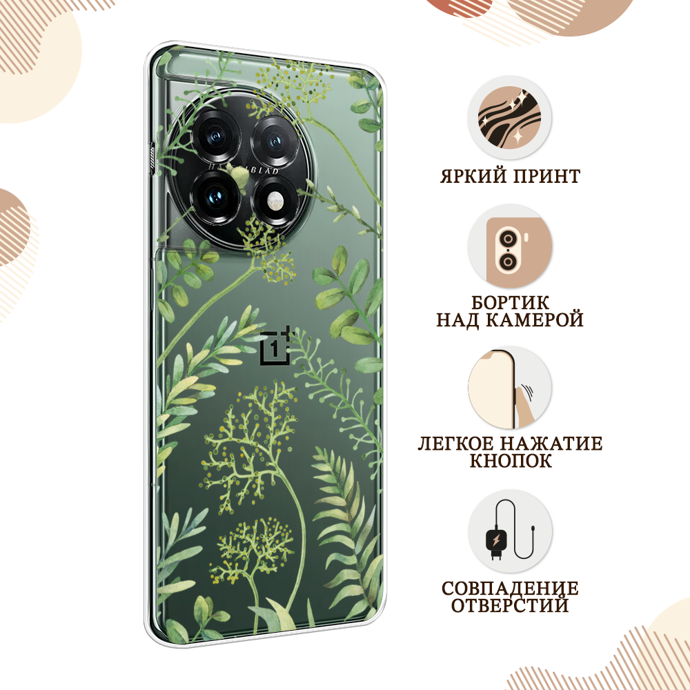 Чехол на OnePlus 11 / Ван Плас 11 с принтом Green Leaves, прозрачный 469 ₽