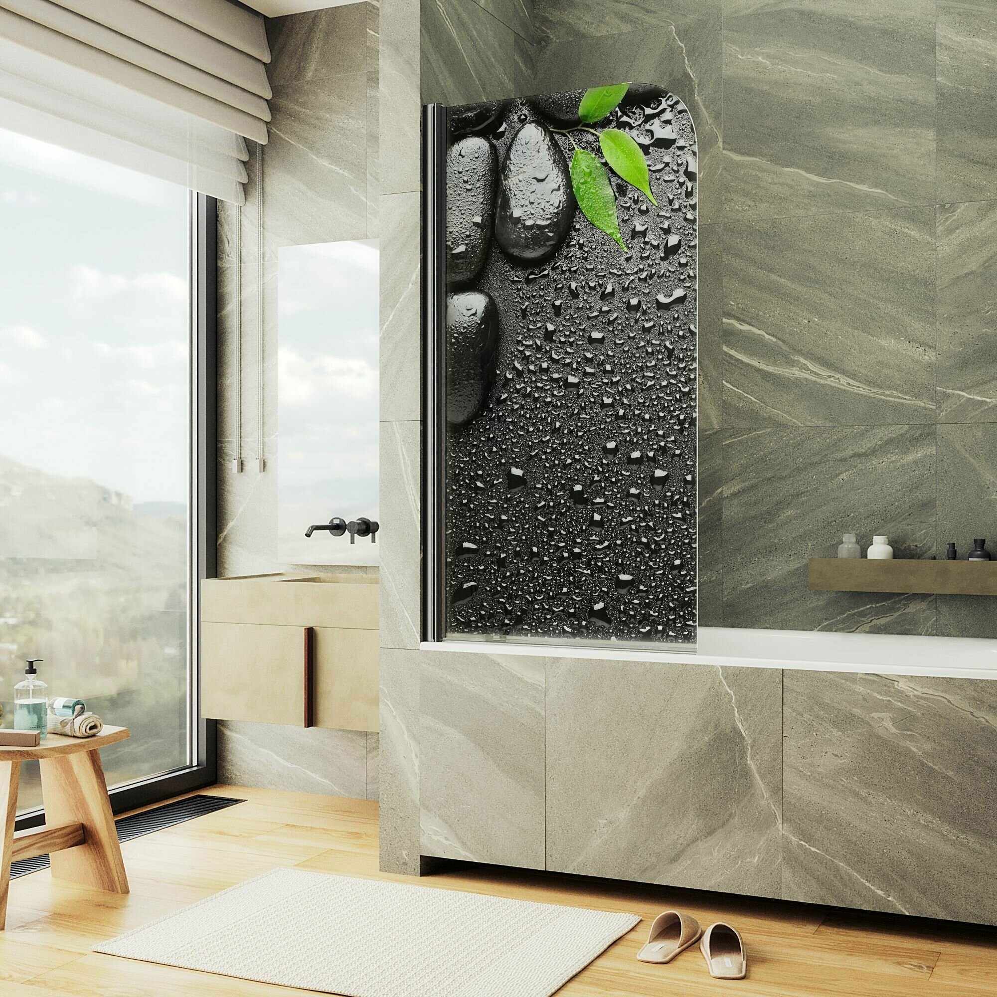 Отзывы на Душевая шторка стеклянная распашная левосторонняя MaybahGlass (ФПП-006-Л), 1400/800, с рисунком в черном профиле