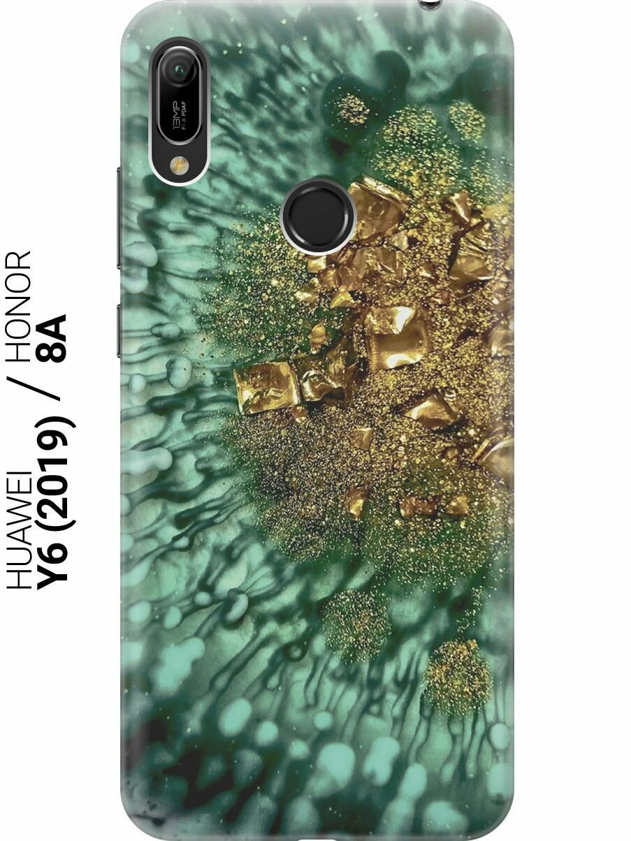 Силиконовый чехол на Huawei Y6 (2019) / Y6 Prime (2019) / Honor 8A / 8A Pro / Хонор 8а / Хонор 8а Про / Хуавей У6 2019 / Хуавей У6 Прайм 2019 с принтом "Золото и изумрудные краски" 343 ₽