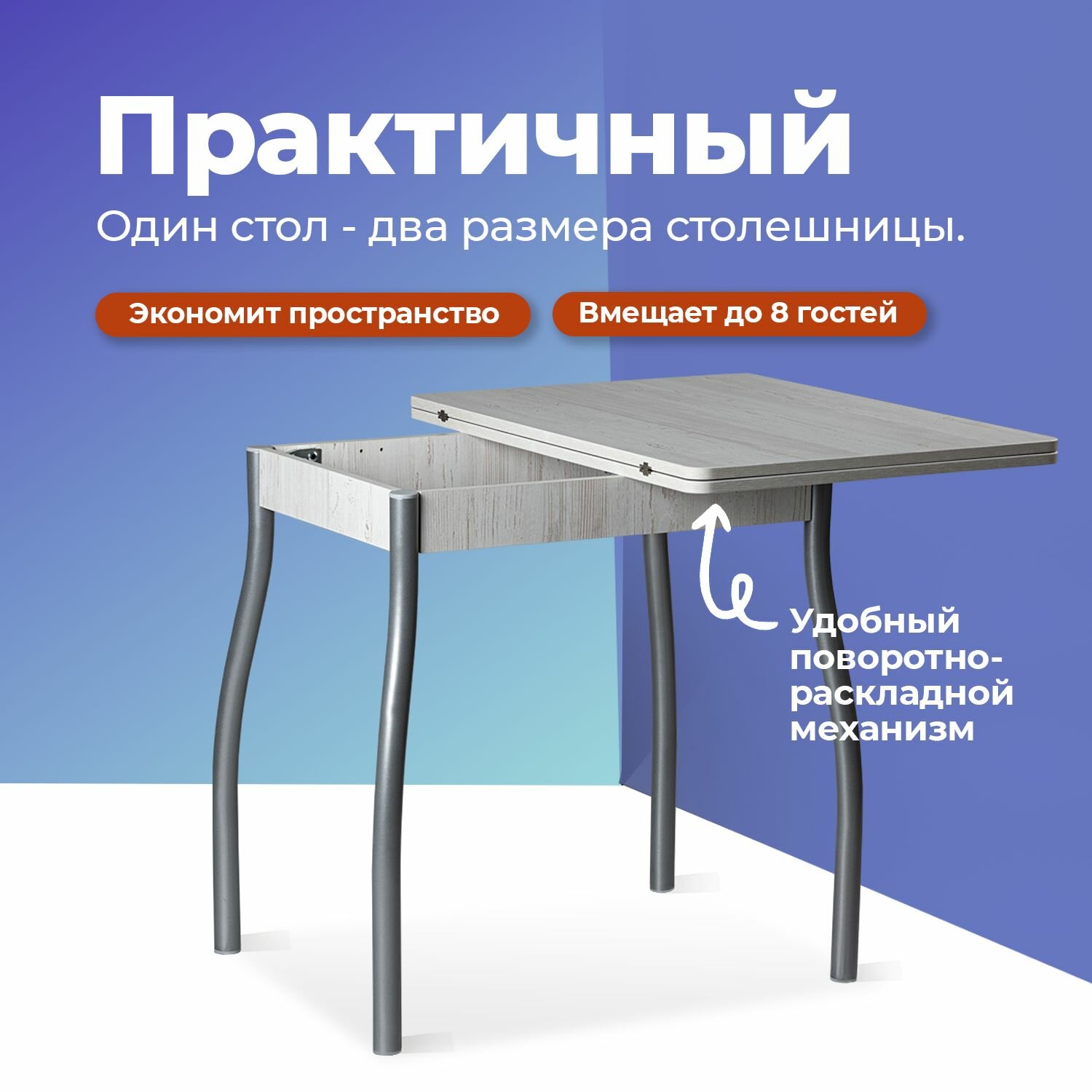 10 цен на Стол кухонный раскладной дуэт.4 (Сосна винтерберг - металлик). Стол для кухни обеденный на металлических ножках (№1.1)