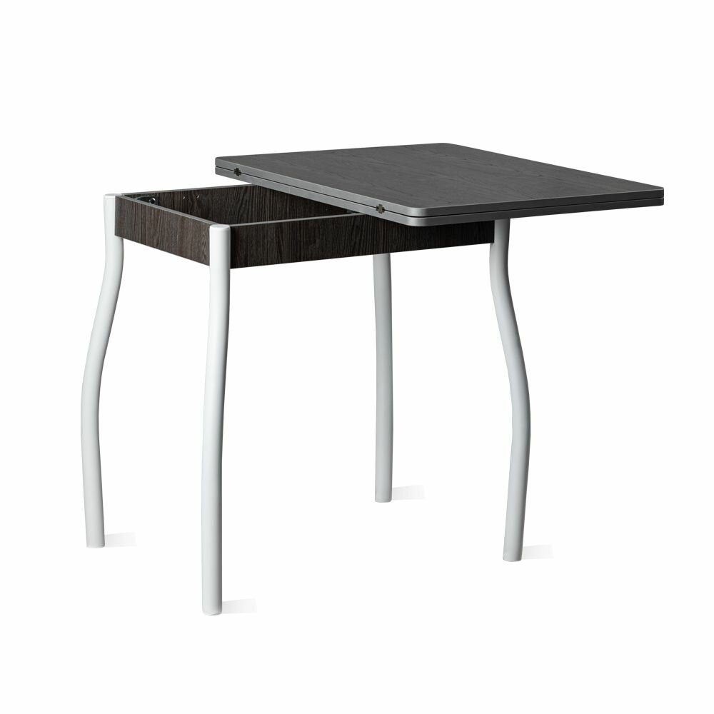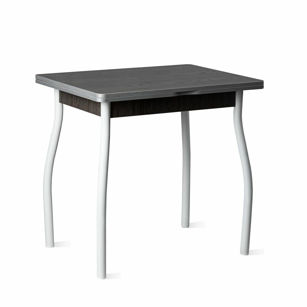 Стол кухонный раскладной дуэт.4 (Ясень анкор темный - белый муар). Стол для кухни обеденный на металлических ножках (№1.1) информация: