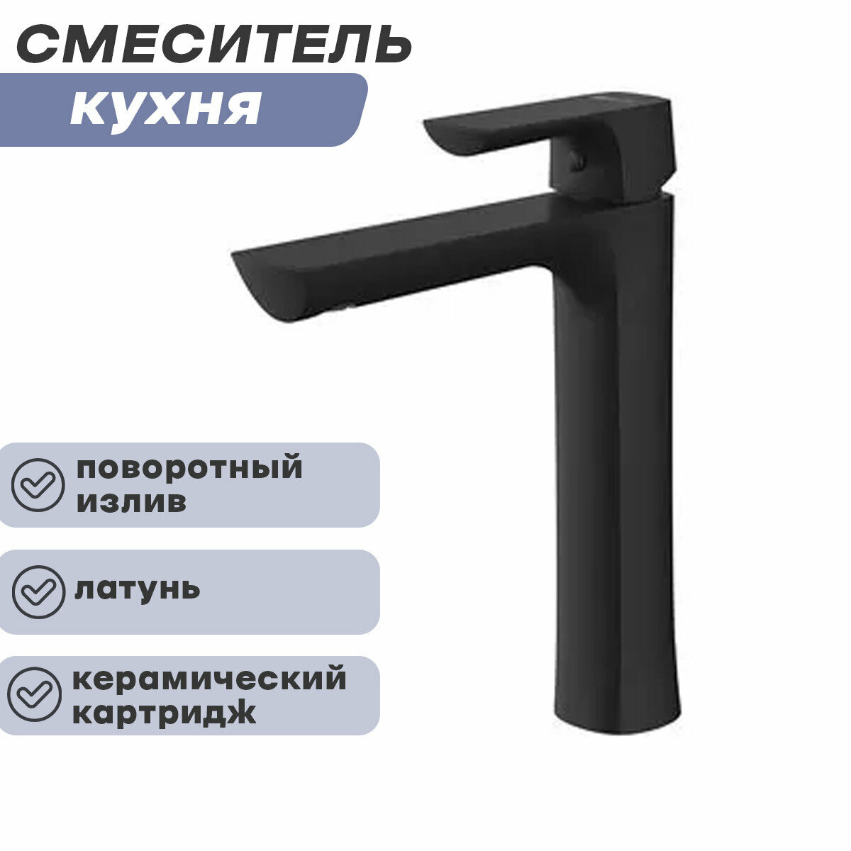 Смеситель для кухни LM7205BL "URSUS"с высоким поворотным изливом, черный, латунь информация: