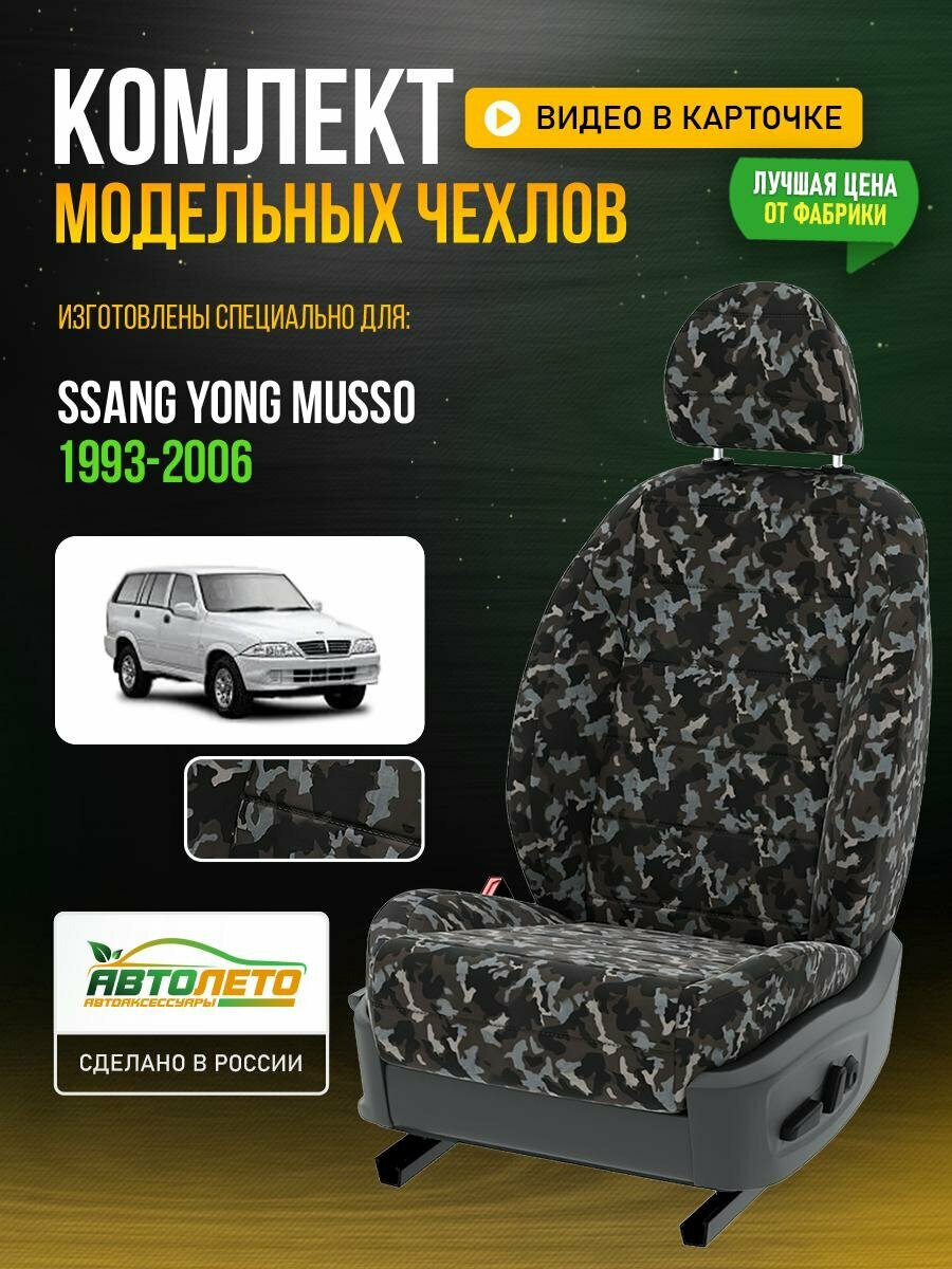 Чехлы для Ssang Yong Musso 1 1993-2006 Камуфляж Камуфляж Брезент Авто Лето LA295C37 информация: